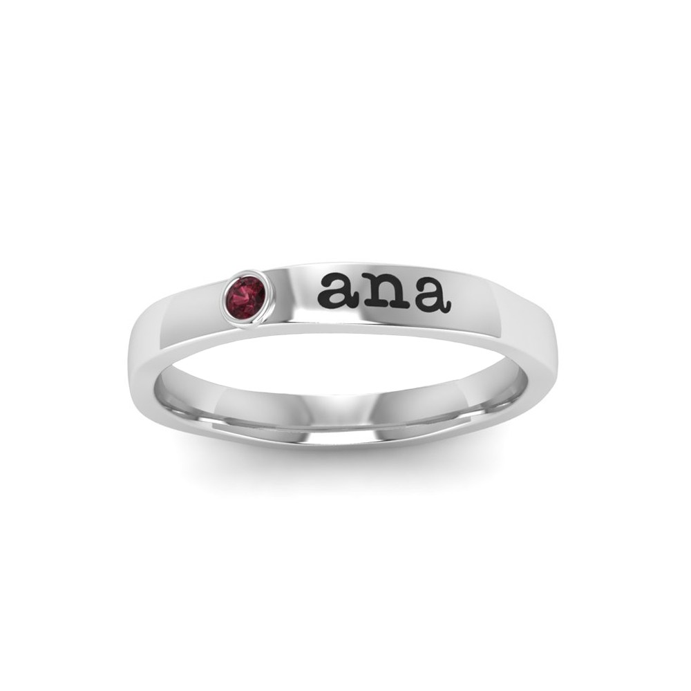 I had this ring made with my grandson’s name that’s due in December. Very pretty birthstone. I absolutely love it!!