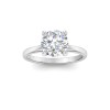 A classic solitaire engagement ring features a 2 Ct Round Lab Diamond with a surprize 0.06 Ctw Diamond secret halo wrapped around the center stone. This stunning 2 Ct Round Lab Created Diamond secret Halo Engagement Ring sits perfectly flush with other bands for a seamless look. Available in Platinum, 10K and 14K White, Yellow, or Rose Gold.