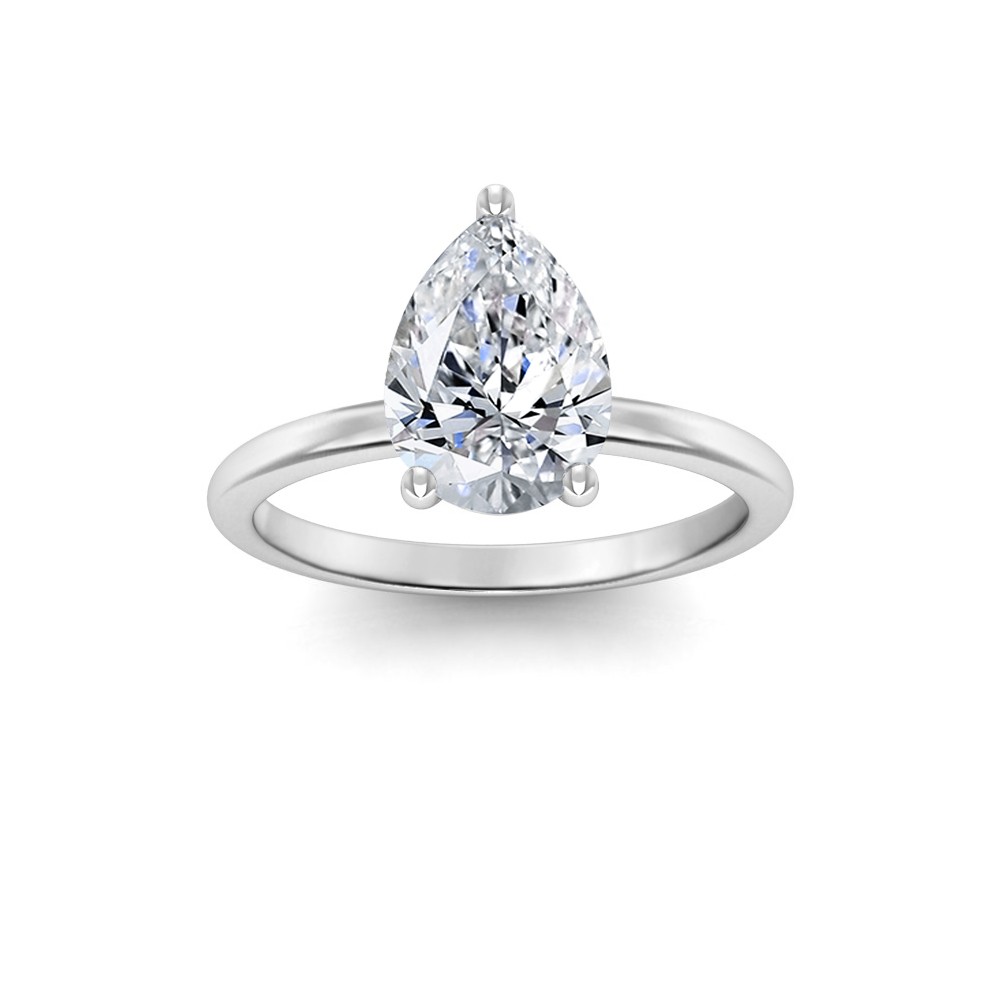 A classic solitare engagement ring featuring a 3 Ct Pear Lab Grown Diamond center. This timeless 3 Ct Pear Lab Diamond Solitaire Ring can be set in different center shapes and sizes. Available in Platinum, 10k, and 14k White, Yellow, or Rose Gold.