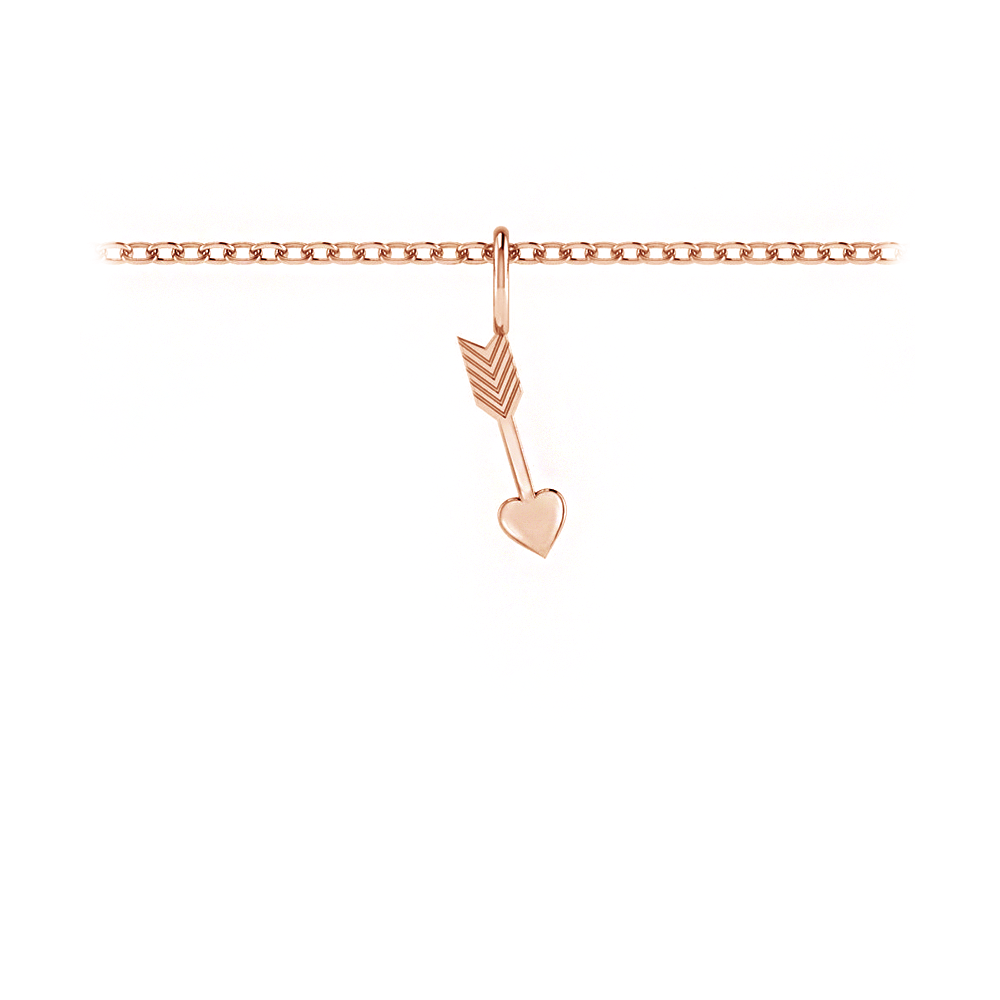 Catch the love of your life with this sweet arrow charm that features a dainty heart on the tip of its arrow. Perfect for layering on its own, or with more S&T charms. Available in Sterling Silver, 10K, and 14K White, Yellow, or Rose Gold. This charm will be a heart-catching birthday, anniversary, or valentine's day gift.