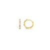 14K Yellow Gold CZ Baguette Huggie Earring - Embrace your style wearing the perfect amount of sparkle on your ears. This mini pair of hoop earrings is made with CZ baguettes and hug your ear just enough. Wear these huggies as your first or second piercing or gift them to your mother, daughter, or sister. Time to celebrate a wedding or anniversary wearing these gorgeous earrings! Each earring opens with a hinge and sold as a pair. Crafted in 14k Yellow gold.