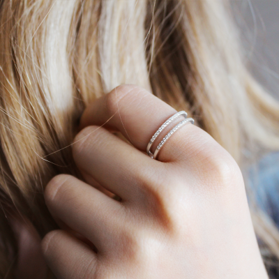 Dainty Round Colorless Lab Diamonds & Marquise Sapphires Double Band Wedding Ring